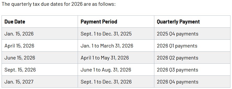 (4) The deadlines for estimated tax payments are typically:
