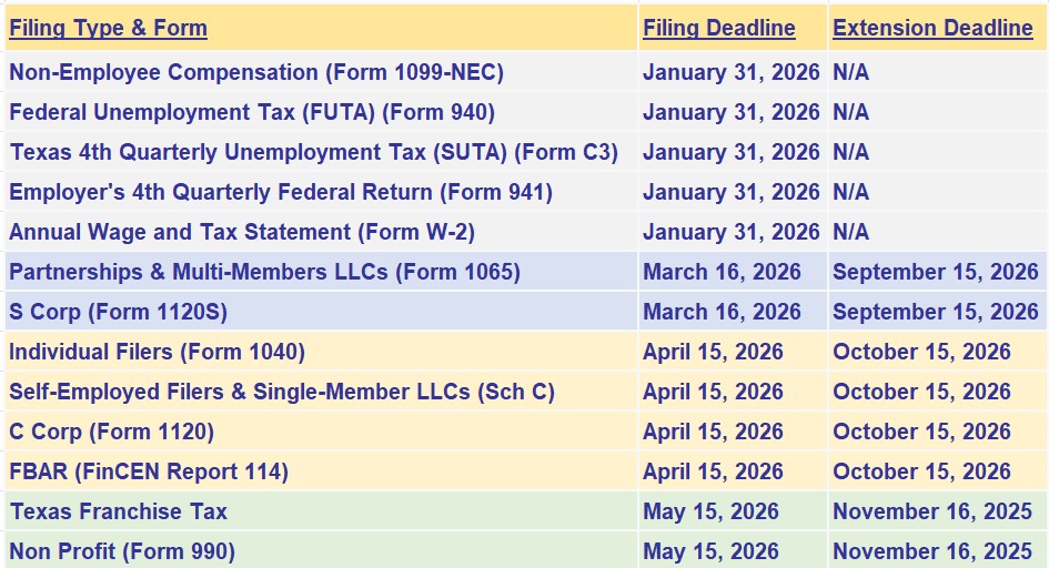 Estimated Tax & Tax Deadlines